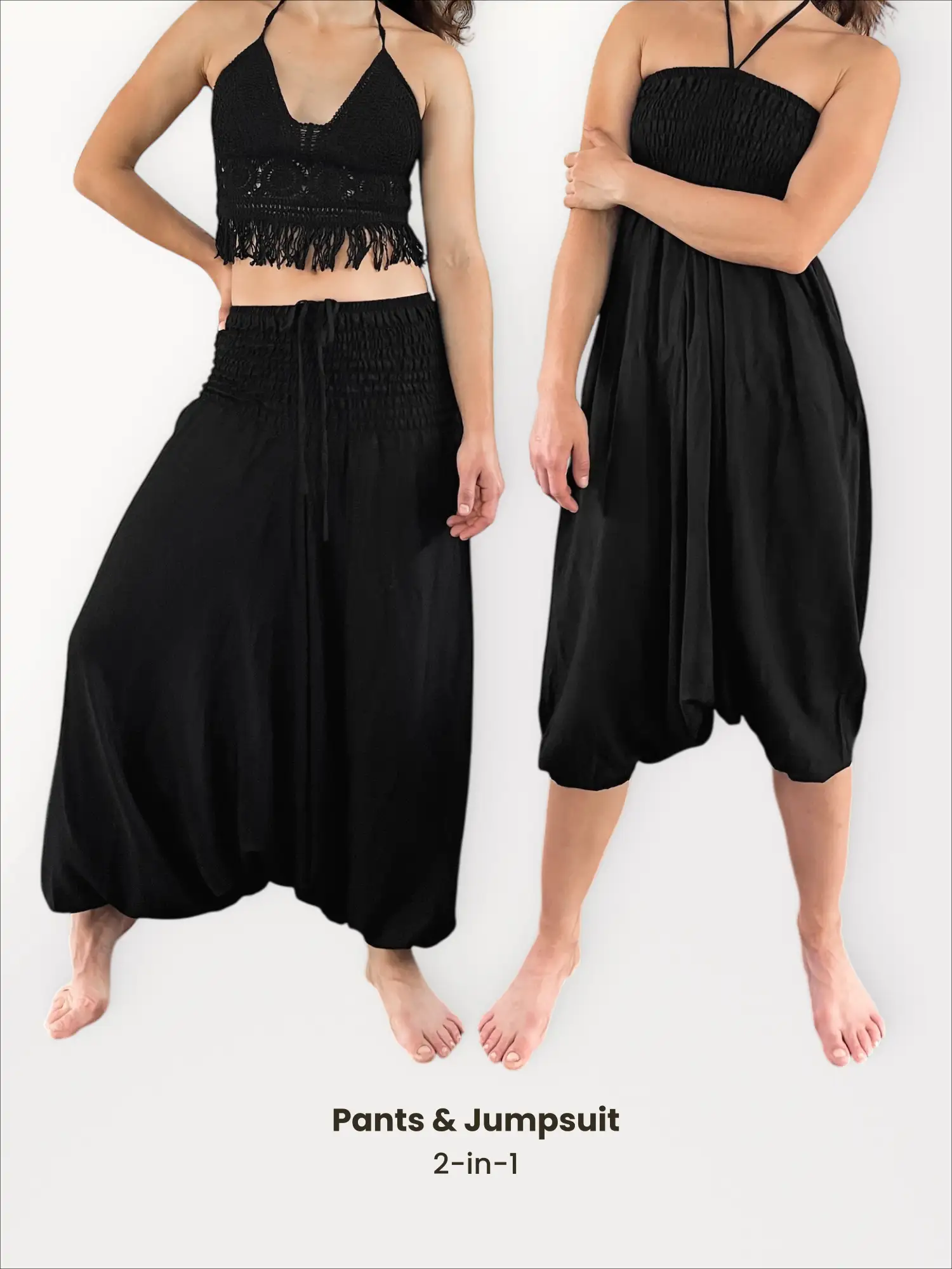 Discover endless style with our classic Aladdin Pants. This clever 2-in-1 design transforms from baggy trousers to a stylish jumpsuit in seconds.