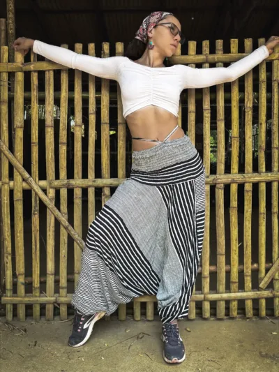 2-in-1 Aladdin Pants – B&W Stripes